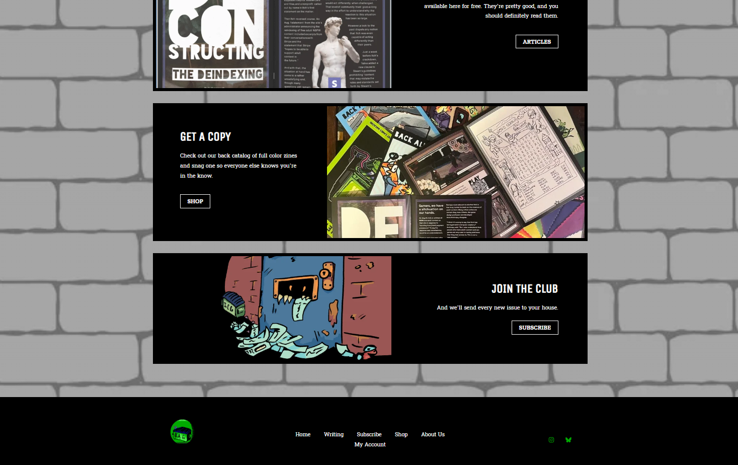 Beginning as a place to direct subscribers to during an in-person event, the Back Alley Games website has, under my direction, transformed into a repository for all the publication’s written content, a tool for gathering and managing subscriptions, and an online store.